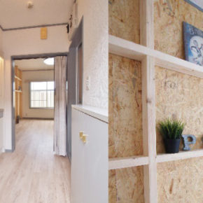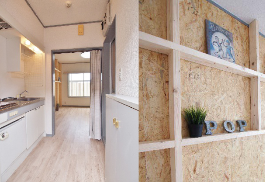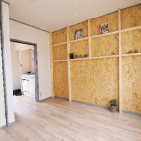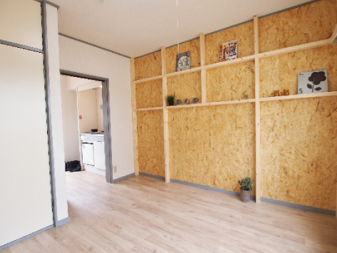 壁面はOSB合板なので、自由にピンを刺しても大丈夫です。