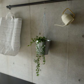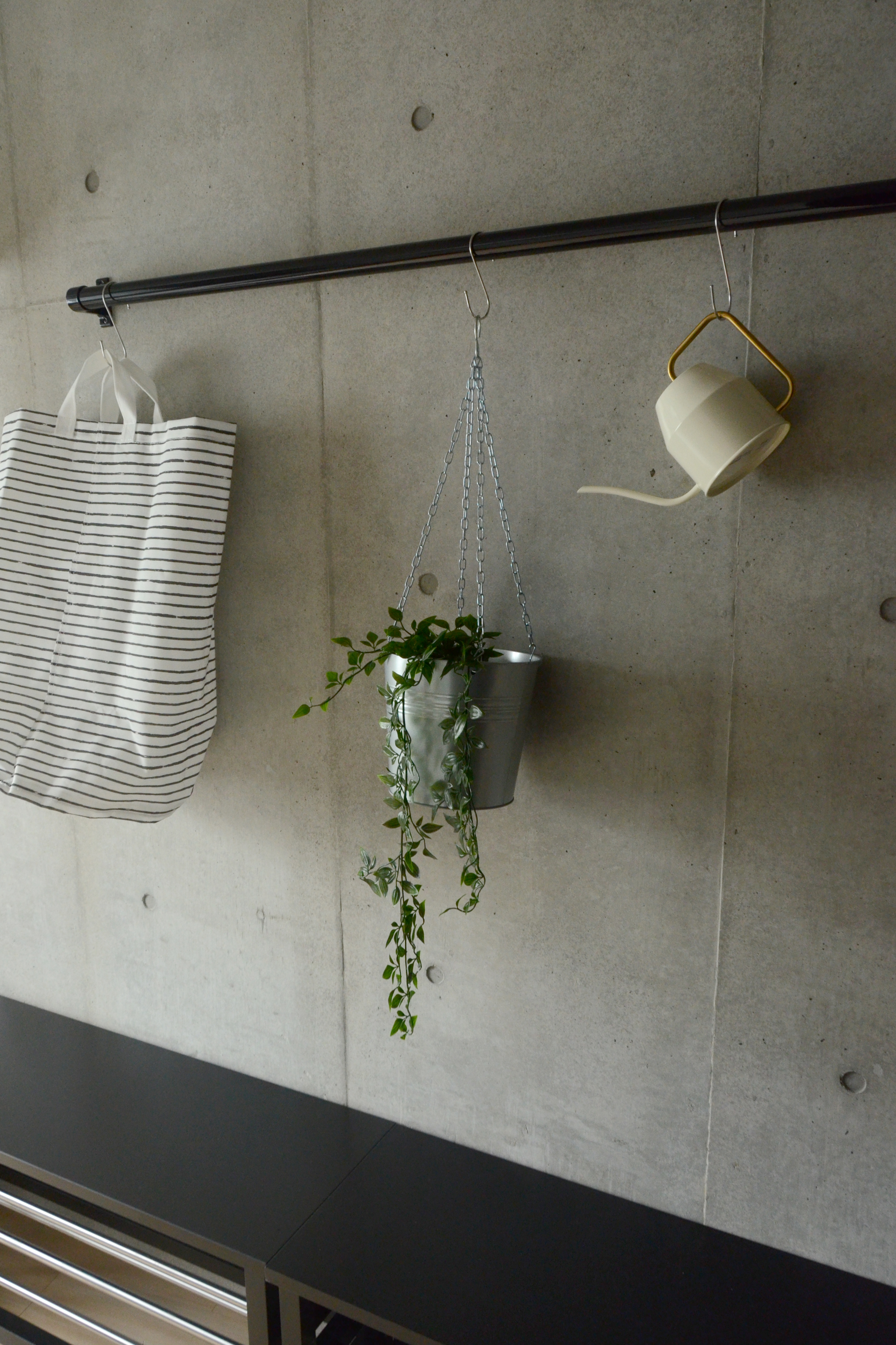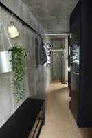 廊下に長いハンガーパイプを取付て収納力UP。