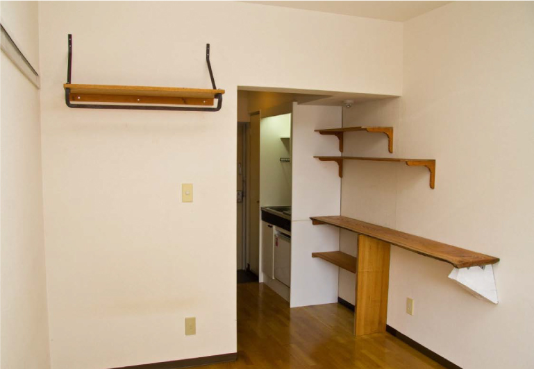 Concept, DIY No.22 Author es-reform_admin Date 2016年8月31日 「欅のカウンターでお洒落なワンルームライフ」 贅沢に欅の一枚板を使ったカウンター。 棚受けには、彫刻家の遊び心がうかがえます。
