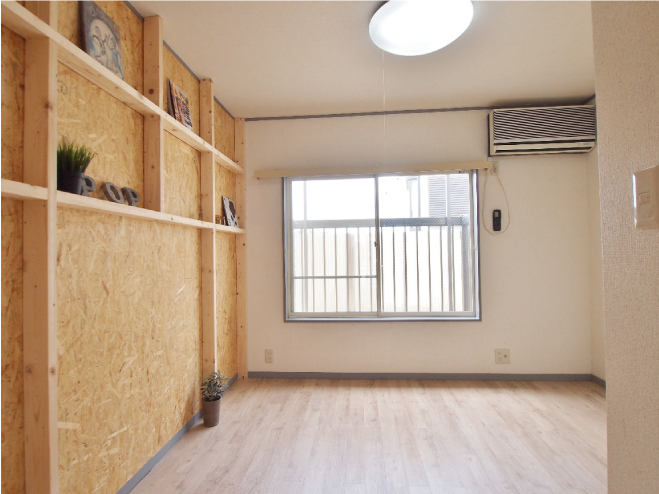 Concept, DIY No.48 Author es-reform_admin Date 2017年6月23日 DIY感覚を大切に、遊び心のある空間を演出。 ご入居者様が遊びやすいよう、OSB貼りの壁もご用意してます。